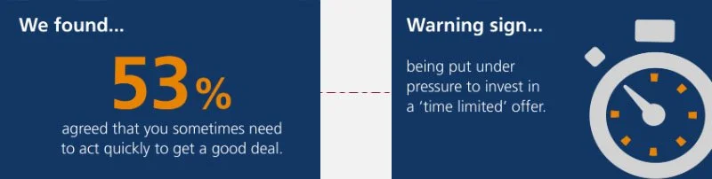 Creating a sense of urgency for an amazing deal psychologically makes people drop their guard to rational thought. Always take a step back and look at what is being presented and how it has been presented. Most people calling you; who you have never spoken with before, who have an amazing plan or idea which has a time sensitive offer, will most likely be pushing their own agenda.